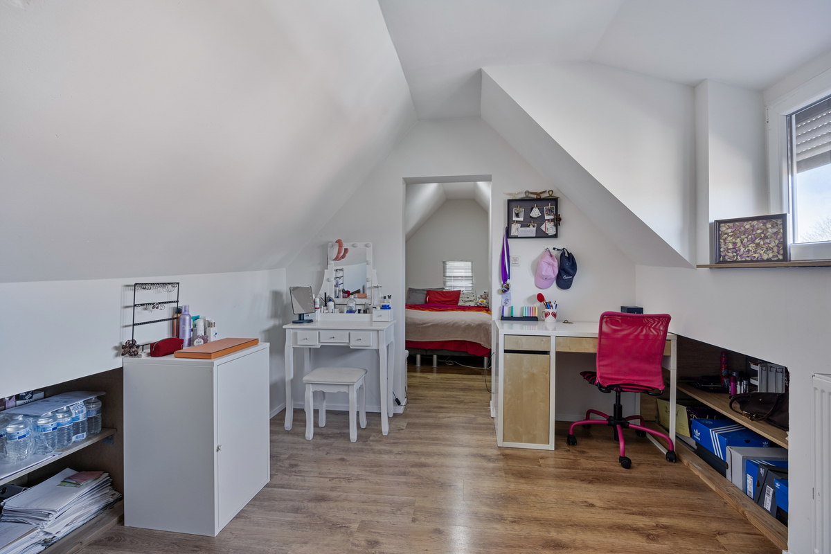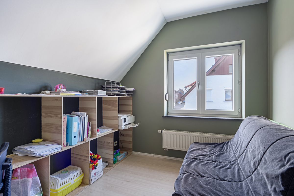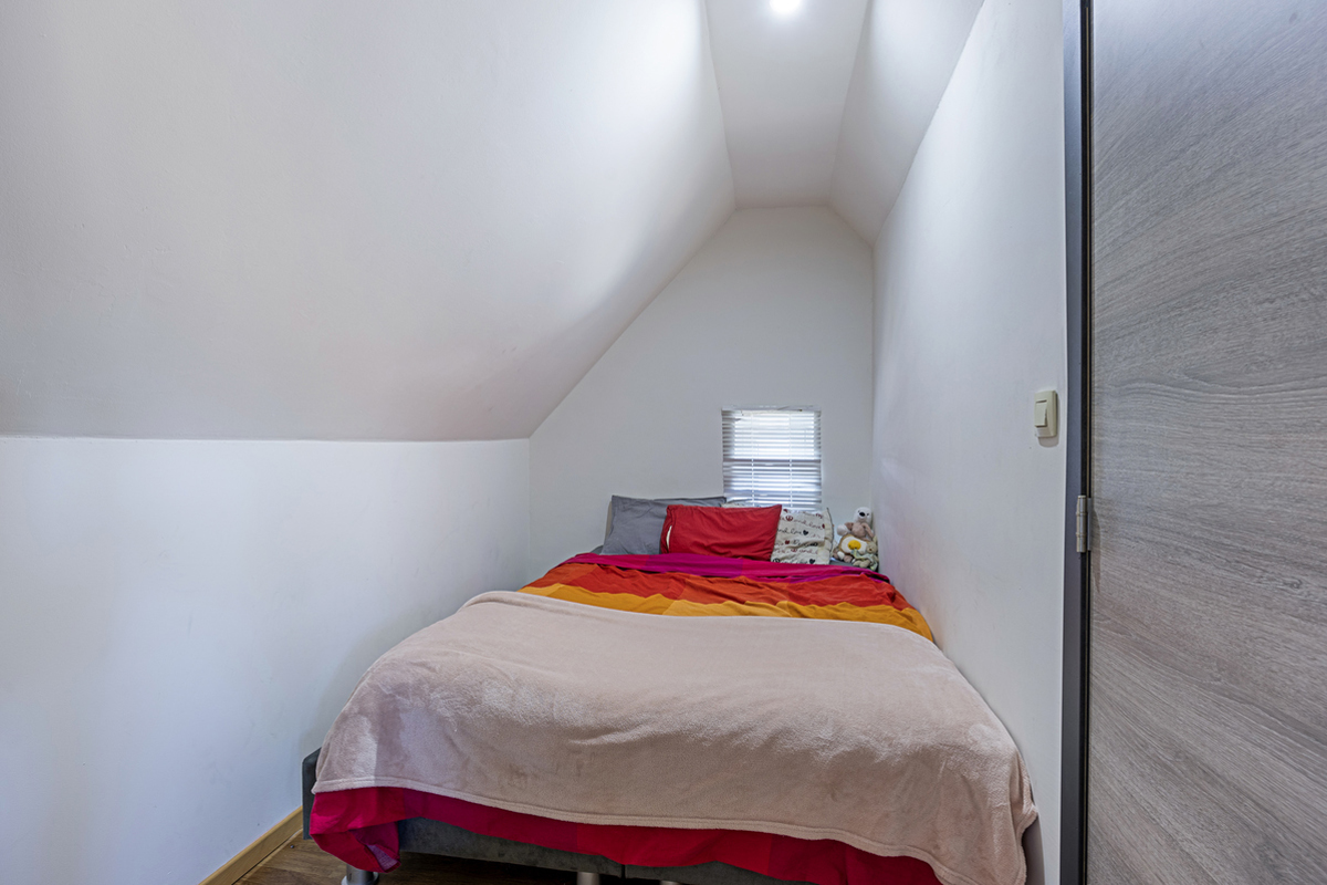 Op de eerste verdieping bevinden zich 3 slaapkamers en een tweede, volledig vernieuwde badkamer. De 5 de slaapkamer treffen we op de bovenste verdieping. De woning beschikt ook over een kelder, wat extra opslagruimte biedt.