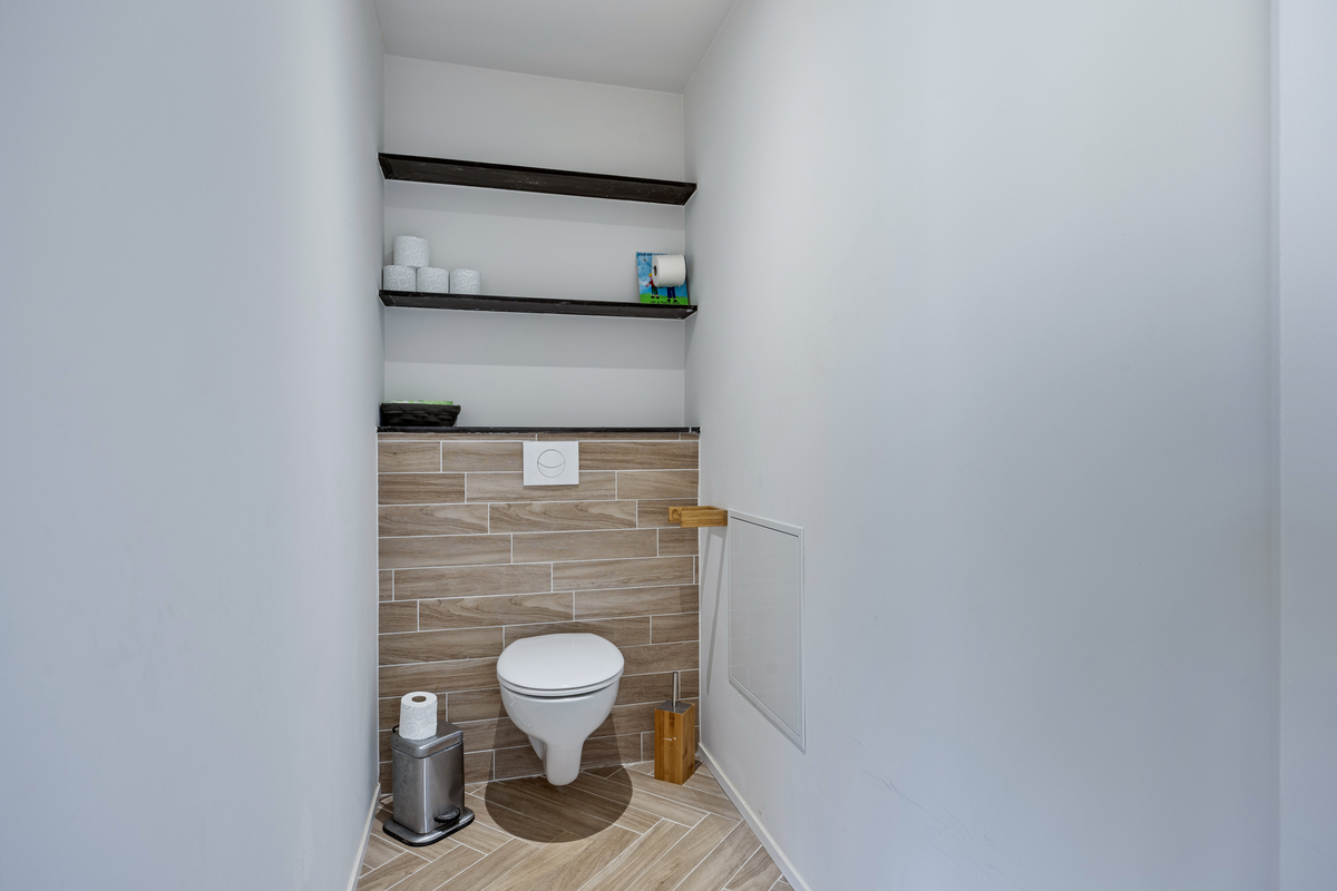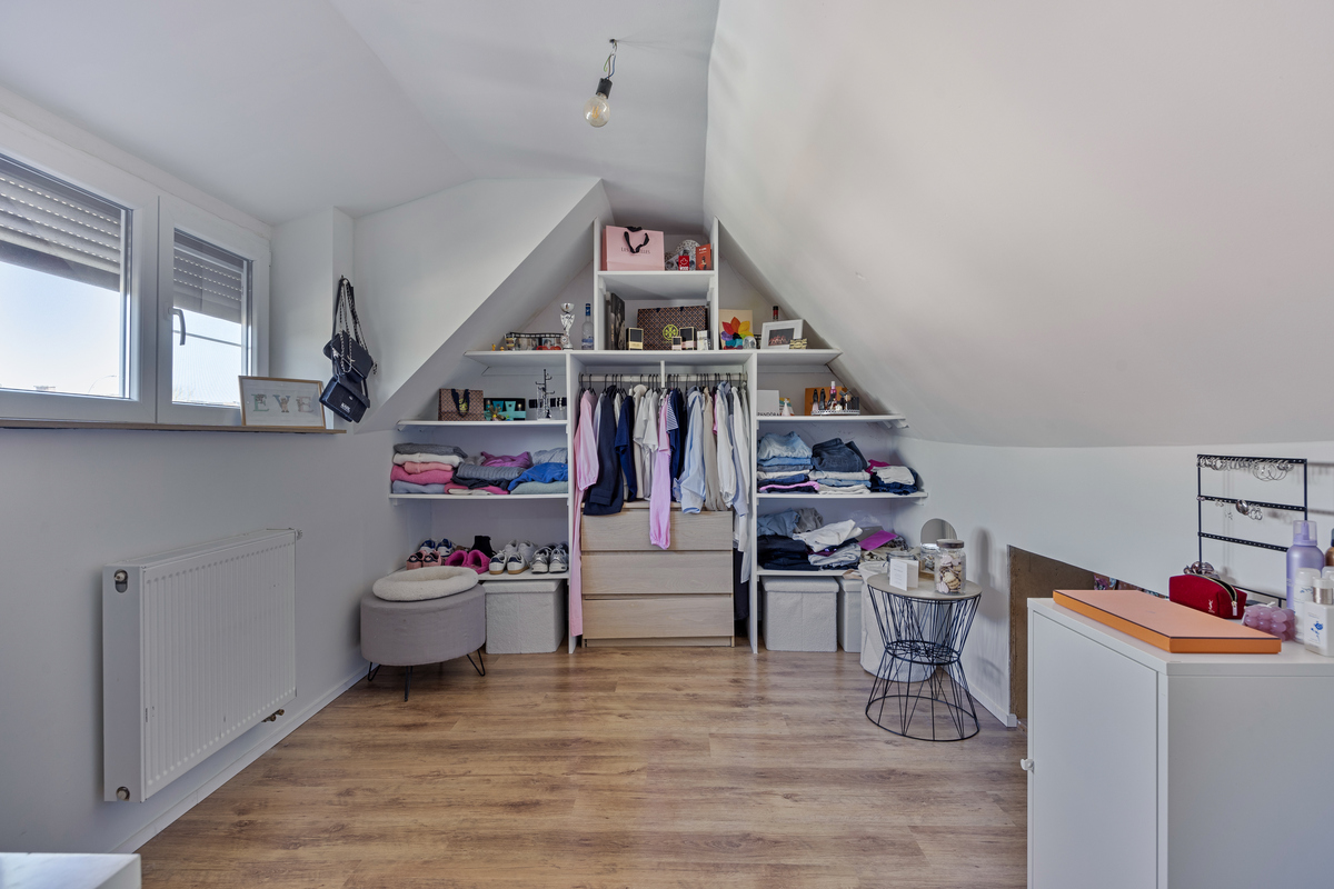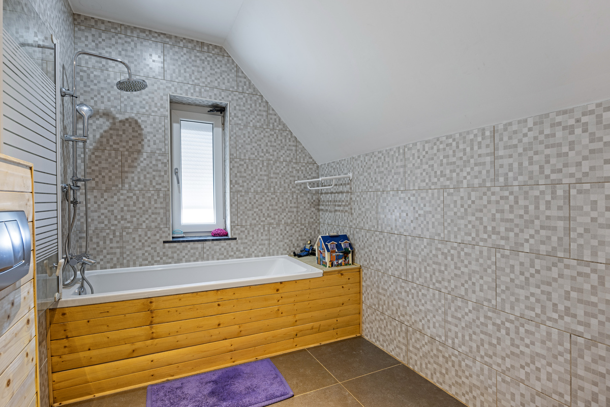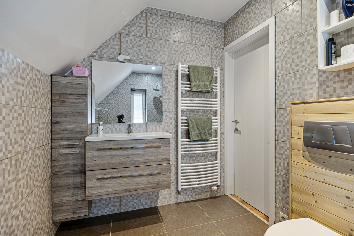 Op de eerste verdieping bevinden zich 3 slaapkamers en een tweede, volledig vernieuwde badkamer. De 5 de slaapkamer treffen we op de bovenste verdieping. De woning beschikt ook over een kelder, wat extra opslagruimte biedt.