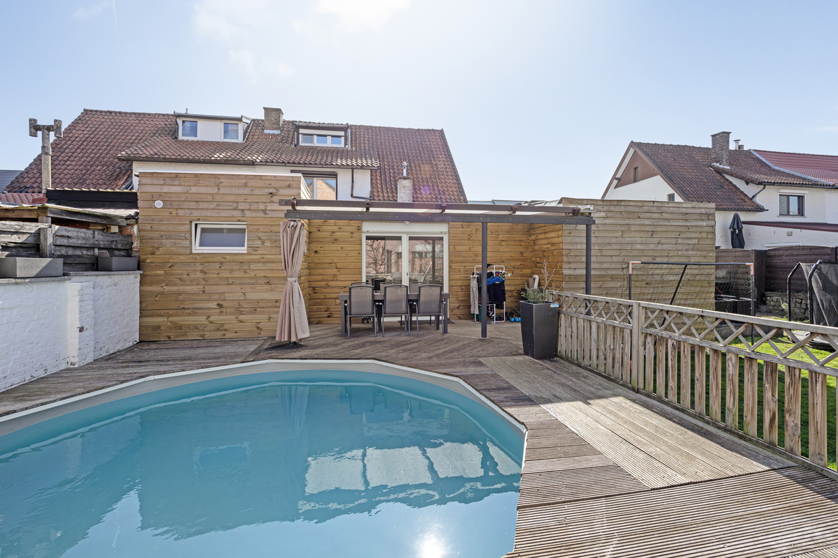 Deze ruime en instapklare woning biedt alles wat een gezin nodig heeft: veel leefruimte, een doordachte indeling en een volledig omheinde tuin met klein zwembad.