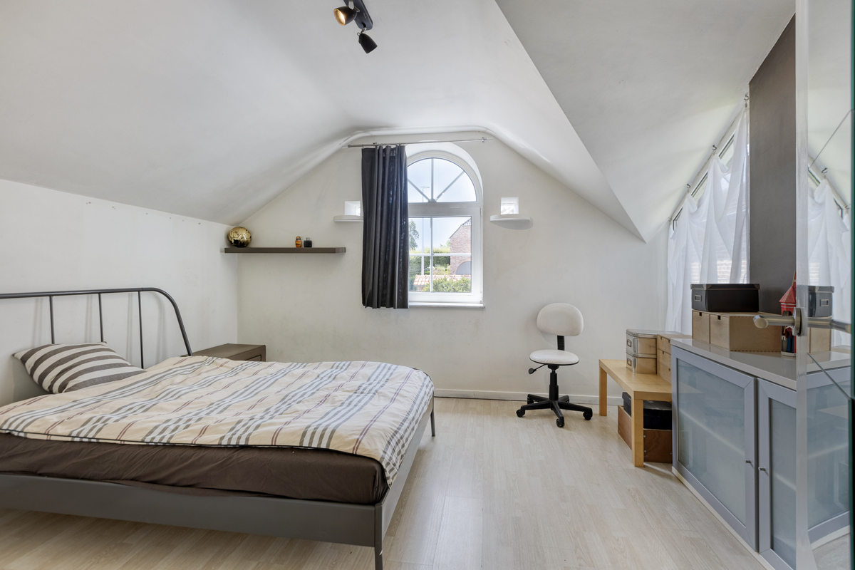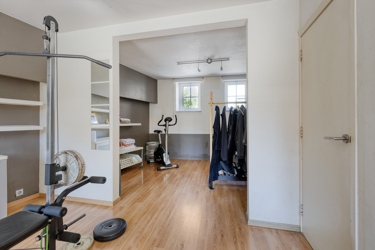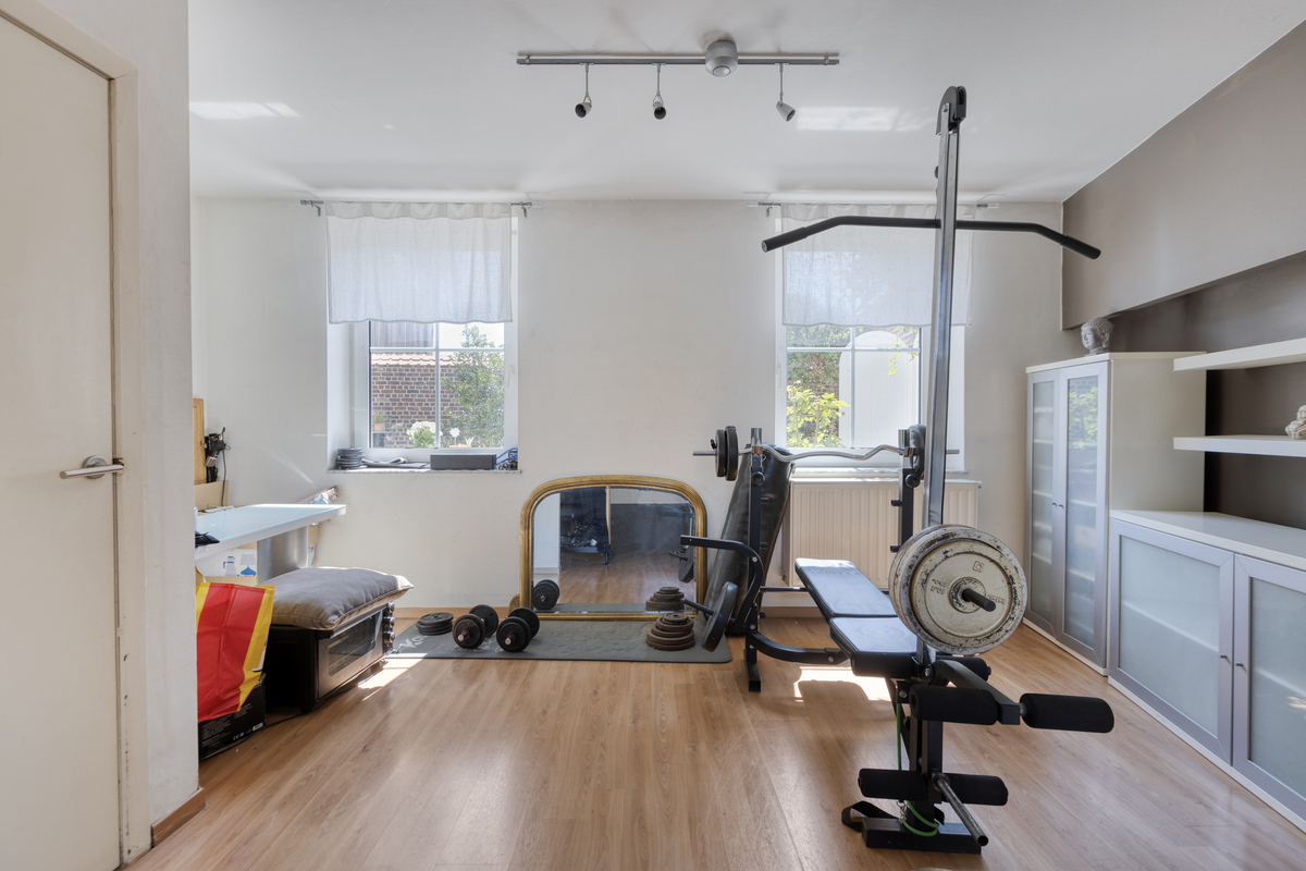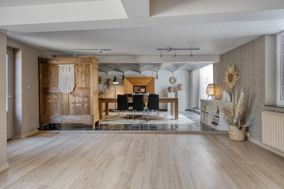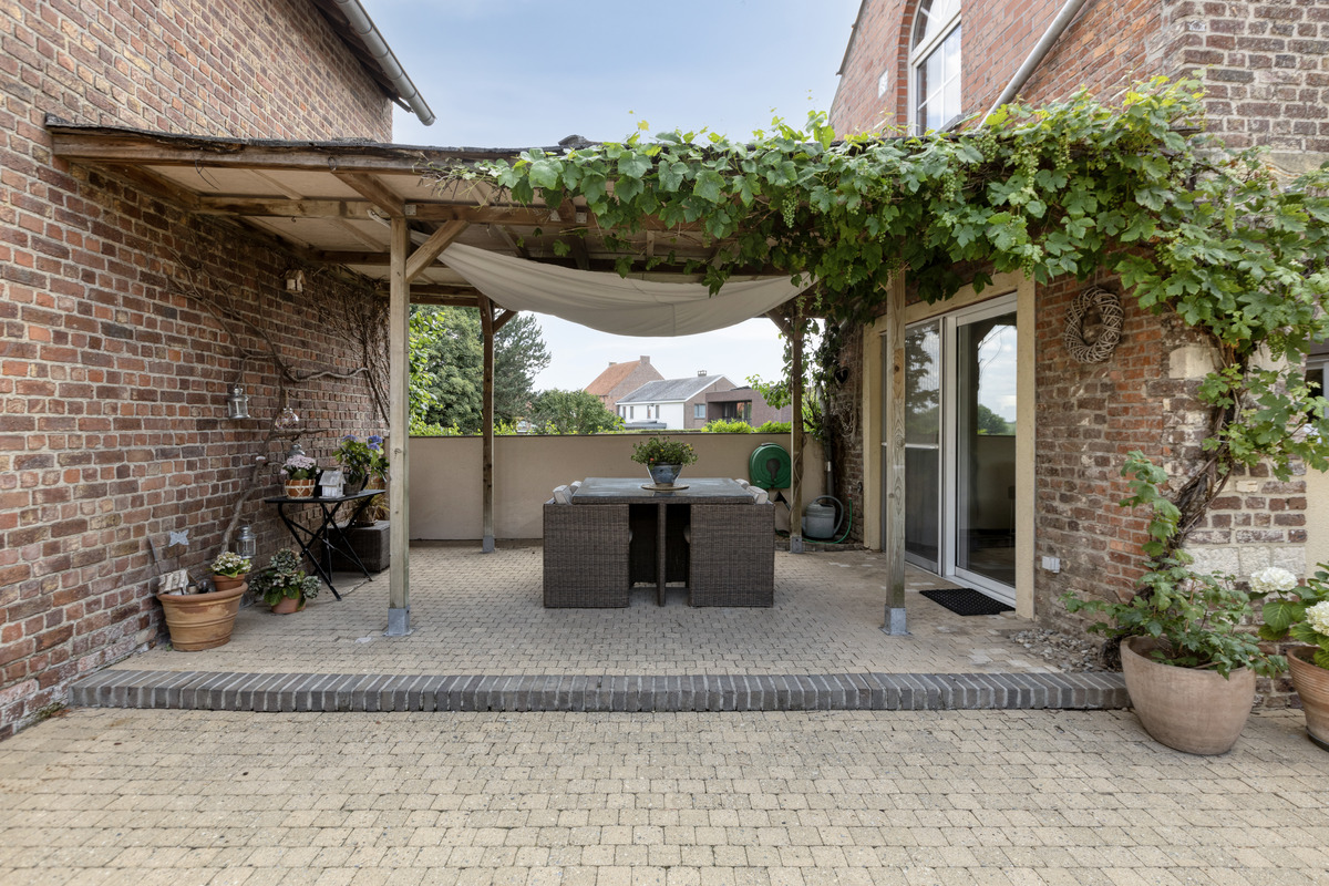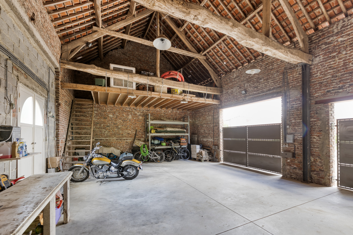 Achteraan bevindt zich een ruime schuur met prachtige balkenstructuur die talloze mogelijkheden biedt: van garage voor meerdere voertuigen tot het creëren van bijkomende ruimte. De ruime parking achteraan de woning kan eventueel omgevormd worden tot een groene tuin. Dankzij de doordachte indeling is deze hoeve ook perfect geschikt als kangoeroewoning.