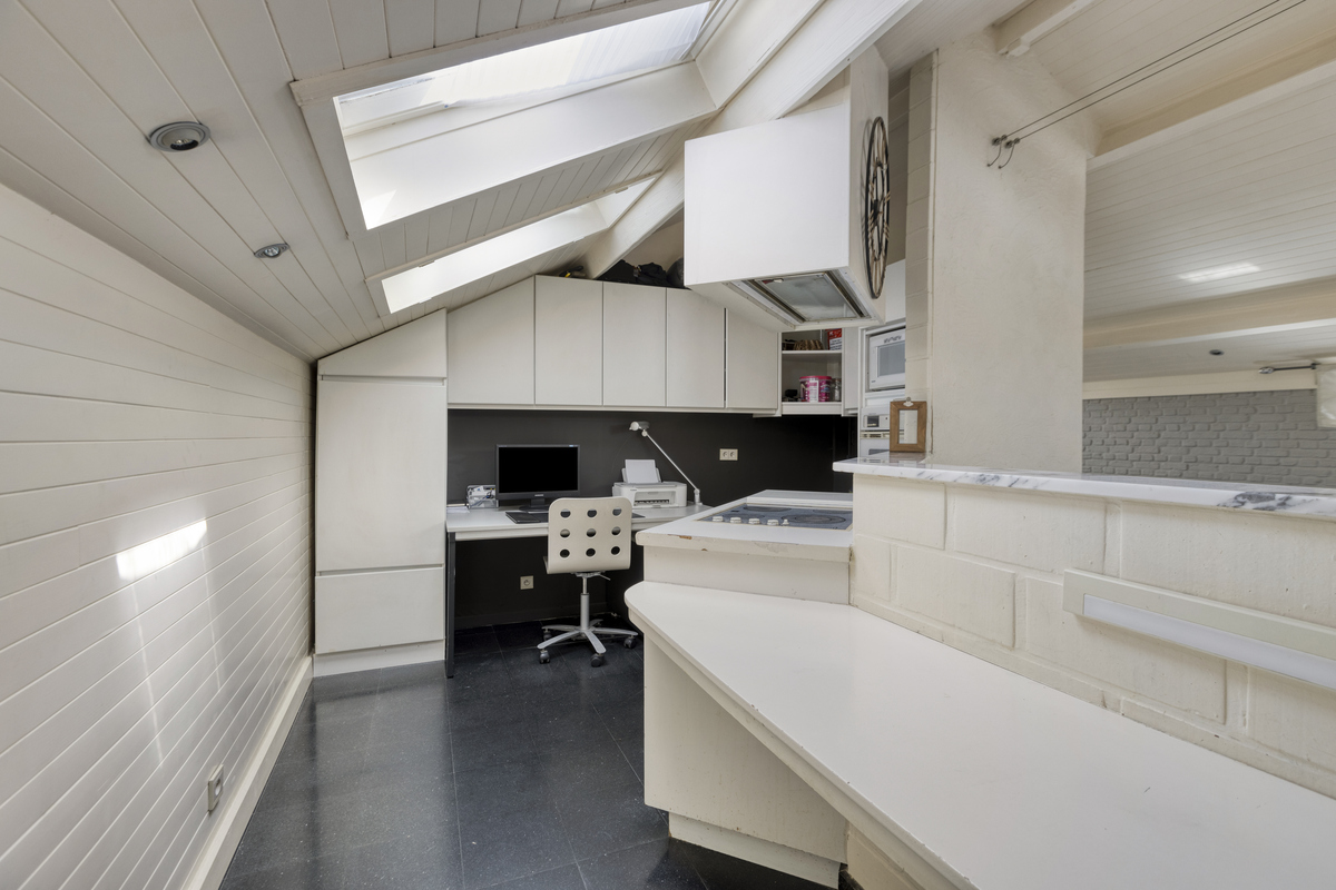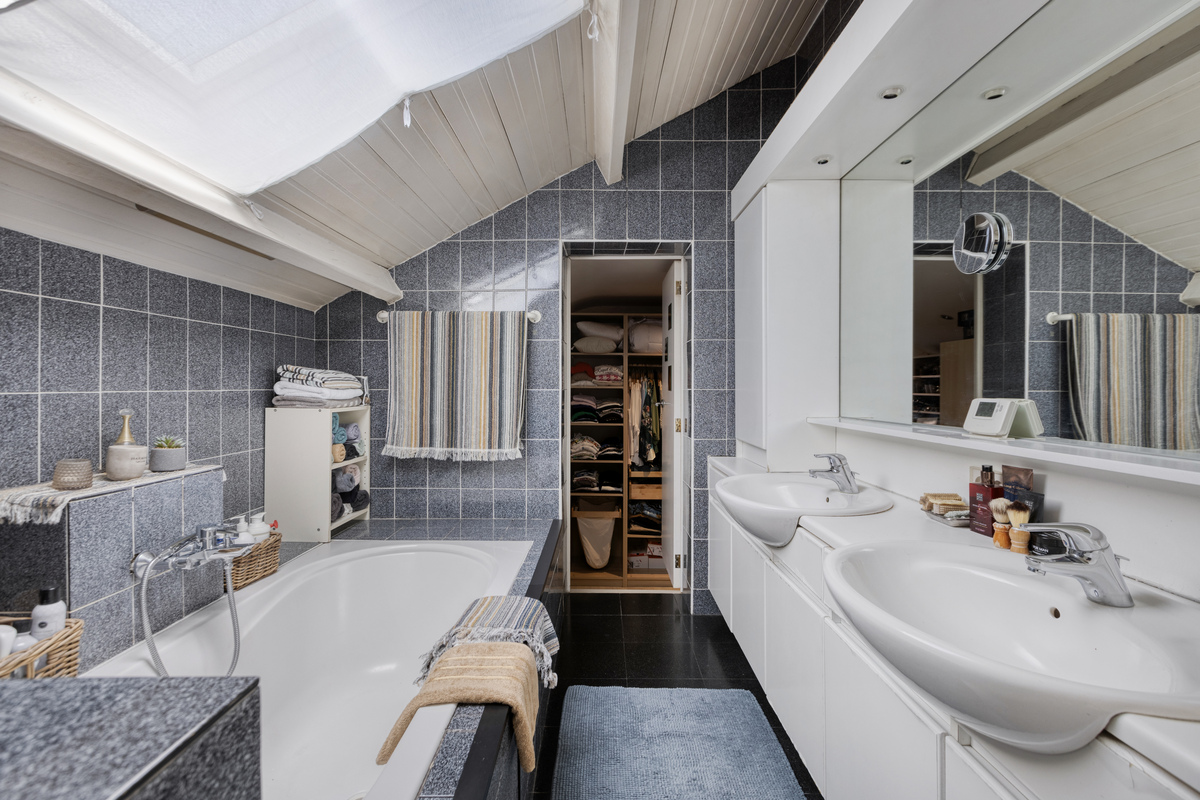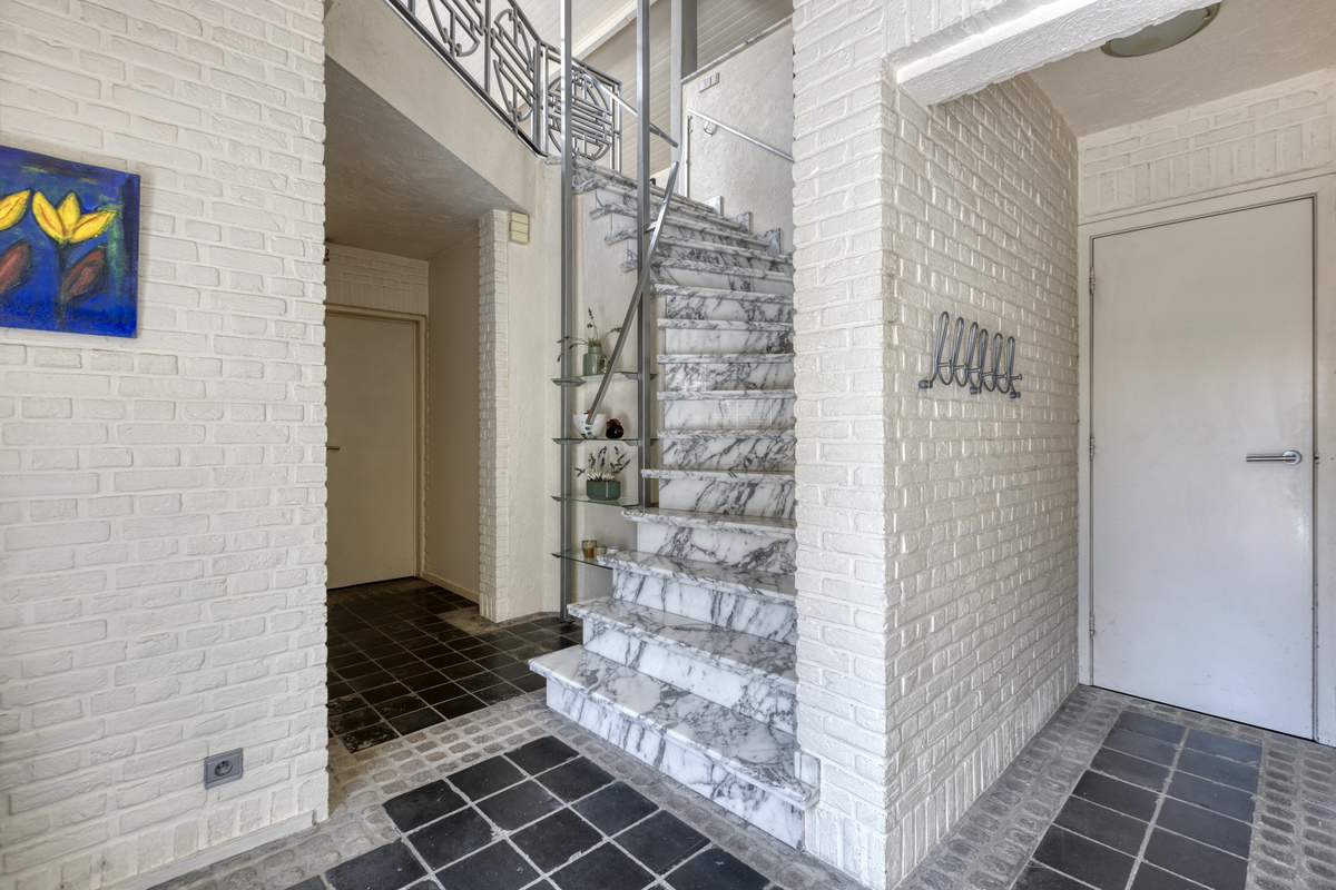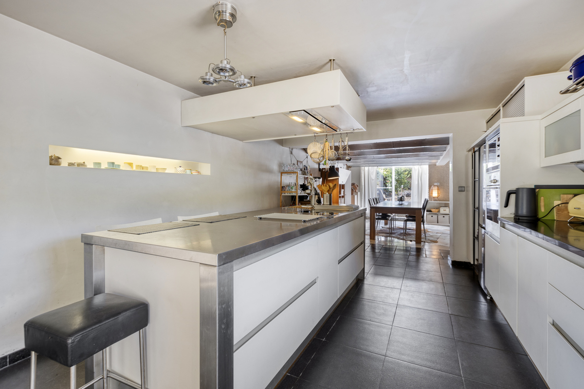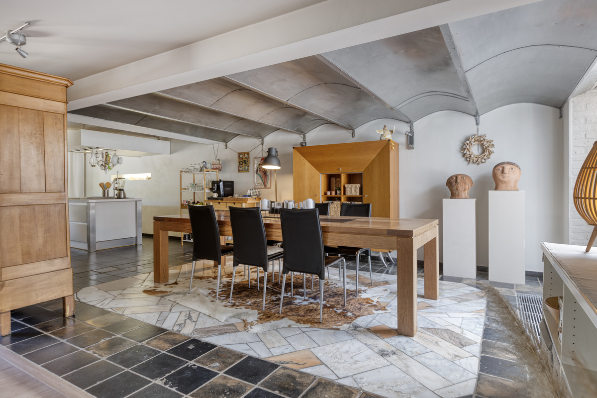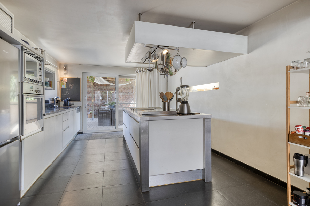 Achteraan bevindt zich een ruime schuur met prachtige balkenstructuur die talloze mogelijkheden biedt: van garage voor meerdere voertuigen tot het creëren van bijkomende ruimte. De ruime parking achteraan de woning kan eventueel omgevormd worden tot een groene tuin. Dankzij de doordachte indeling is deze hoeve ook perfect geschikt als kangoeroewoning.