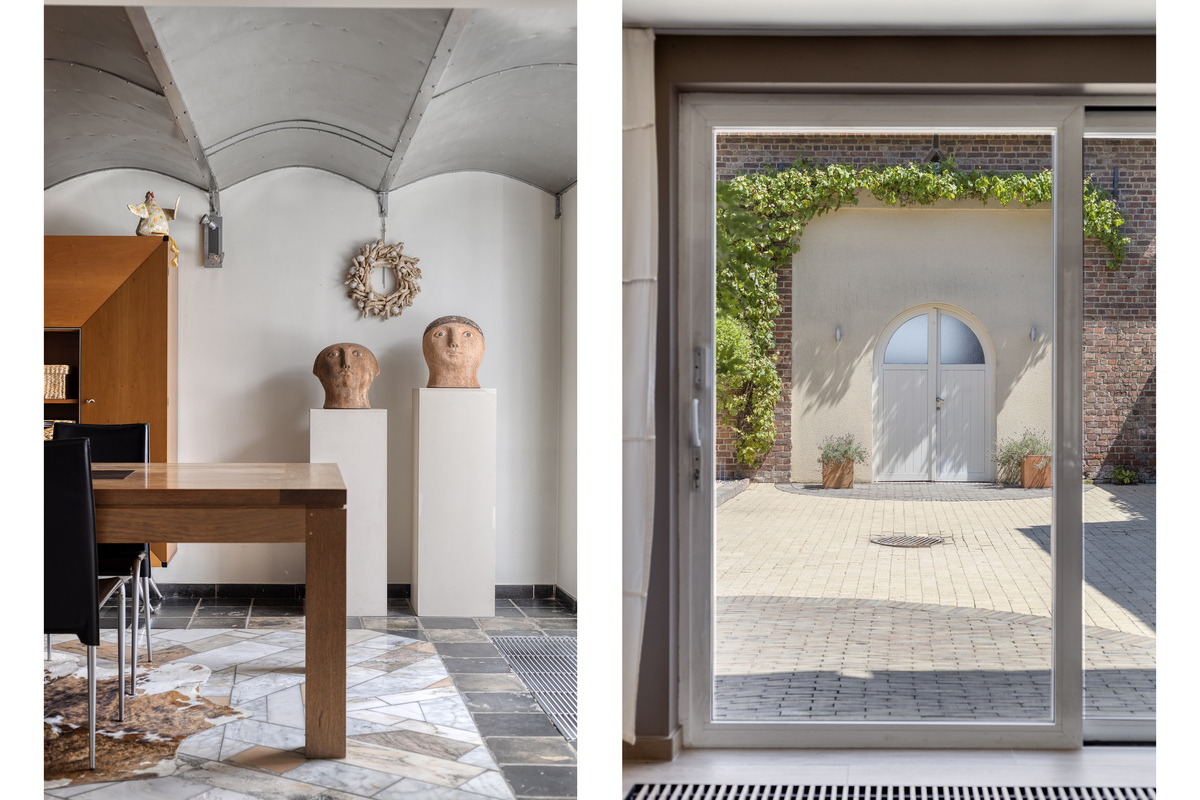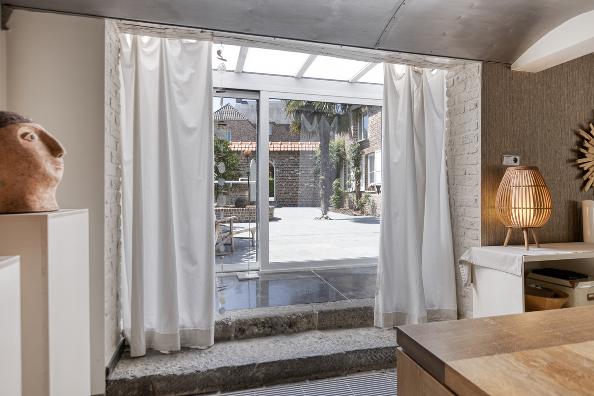 De woning beschikt over twee binnenkoeren en biedt optimale privacy. De voorste binnenkoer die toegang biedt tot de woning. De achterliggende binnenkoer nodigt uit tot gezellige etentjes en het terras biedt een unieke plek om te ontspannen met zicht op de gezellige binnenkoer en grenst praktisch gezien direct aan de keuken.