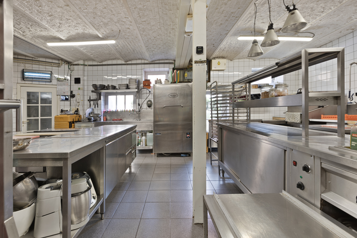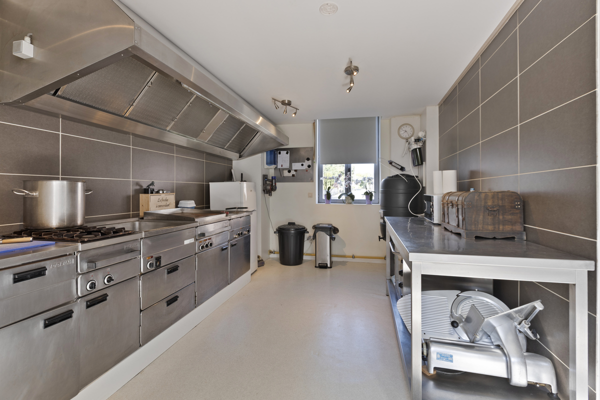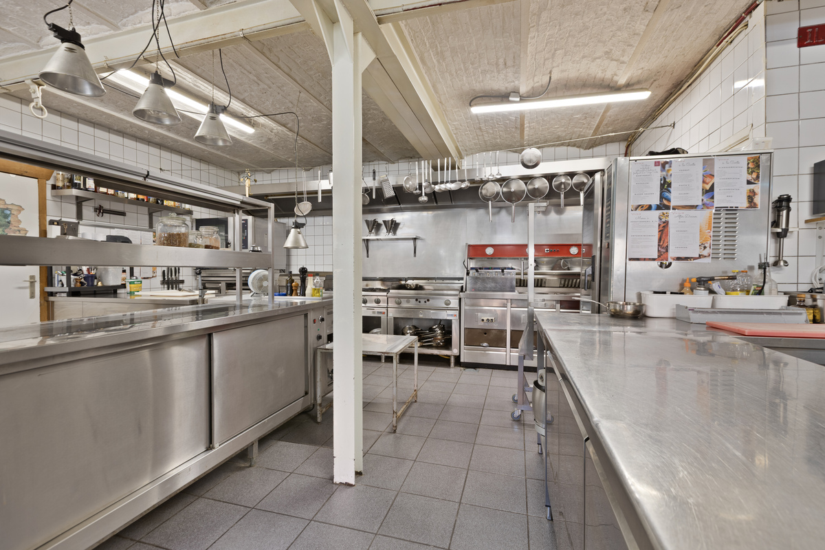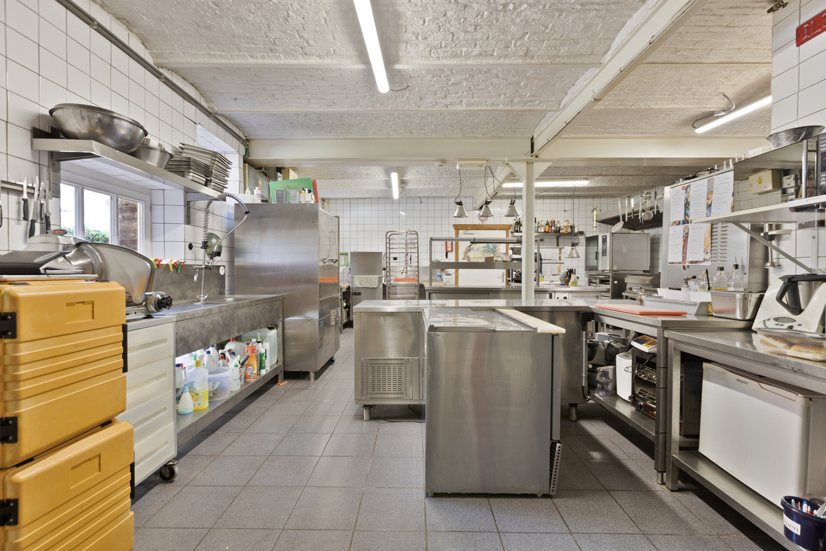 De keuken is volledig ingericht en professioneel uitgerust. Aansluitend bevindt zich een aparte koel- en vriescelruimte – functioneel en efficiënt voor elke horecauitbating.