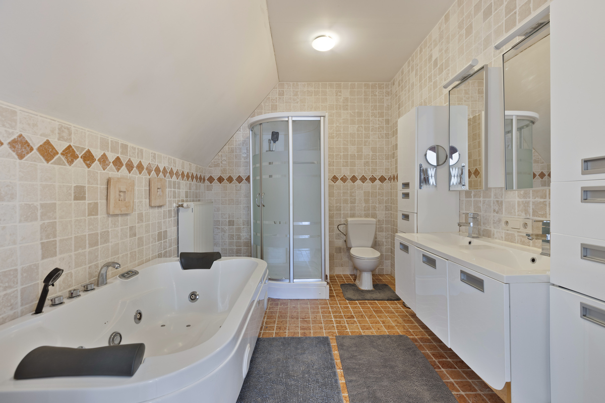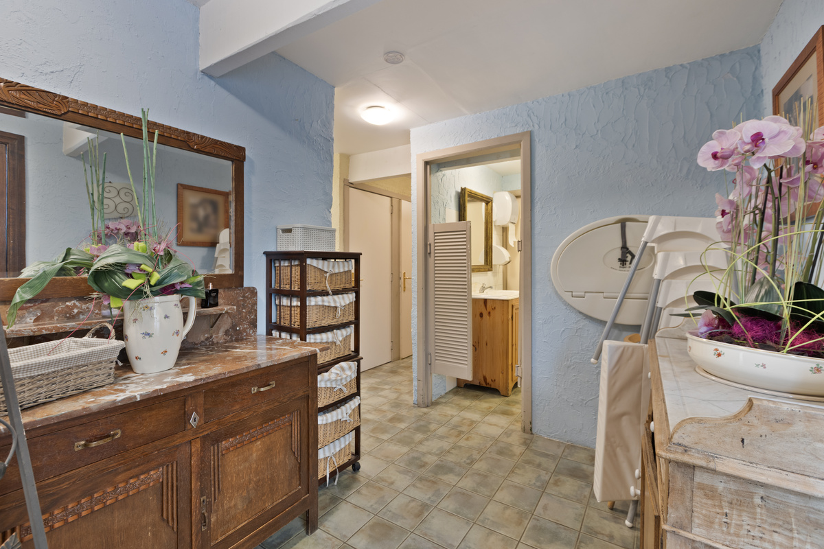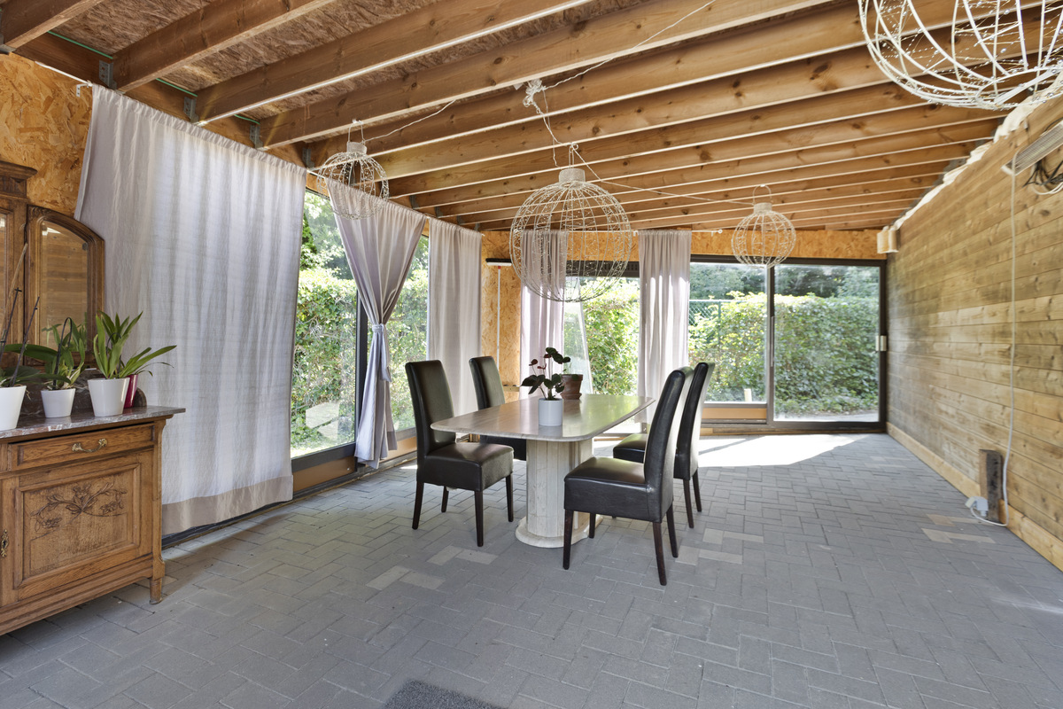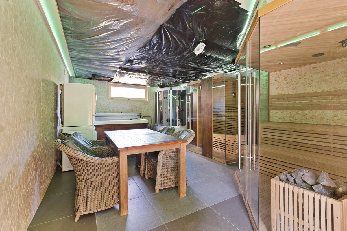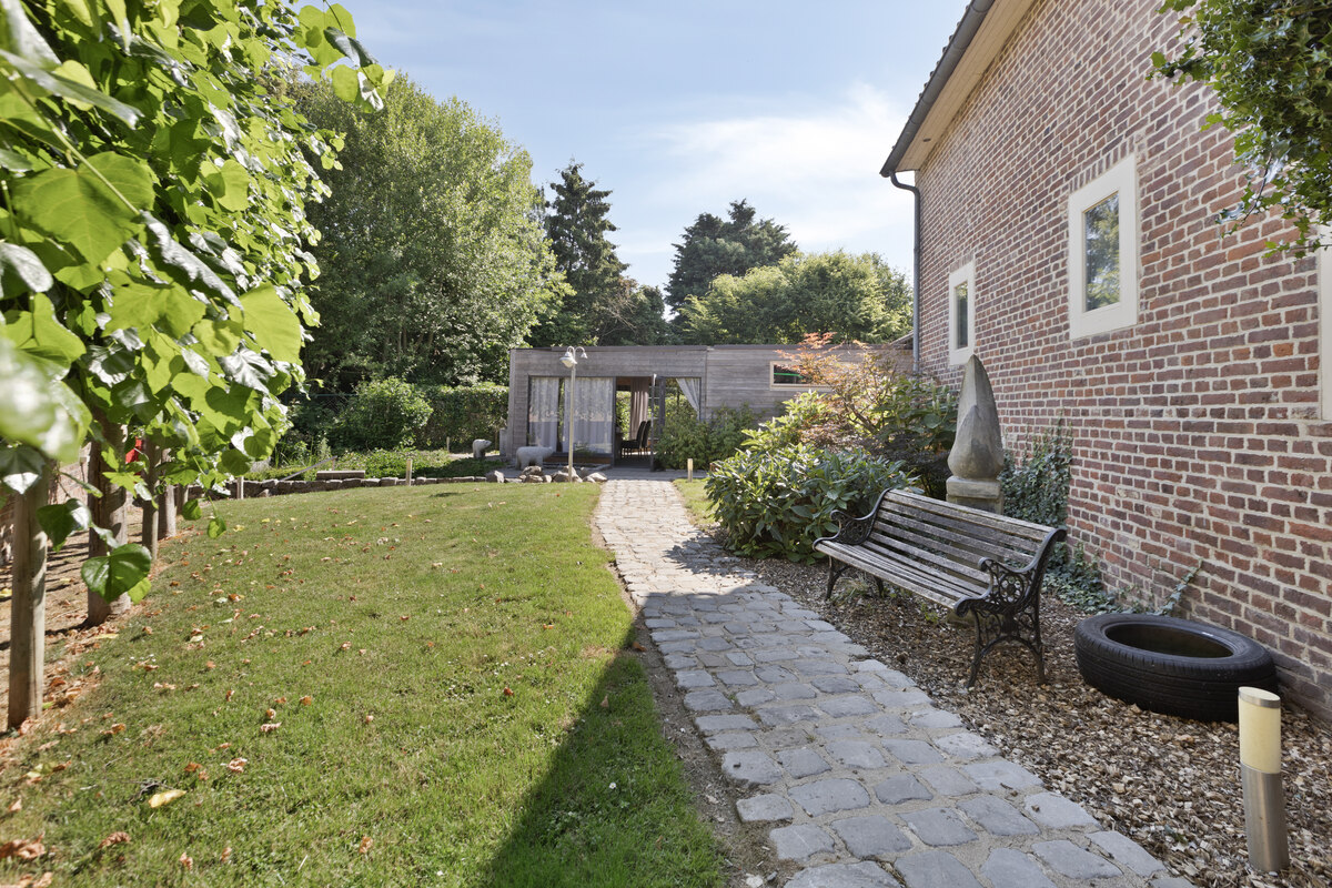 In de tuin van de privéwoning bevindt zich een losstaand bijgebouw dat vandaag dienstdoet als wellnessruimte, uitgerust met polyvalente ruimte, sauna’s en jacuzzi – een prachtige aanvulling op het B&B- of retreataanbod.