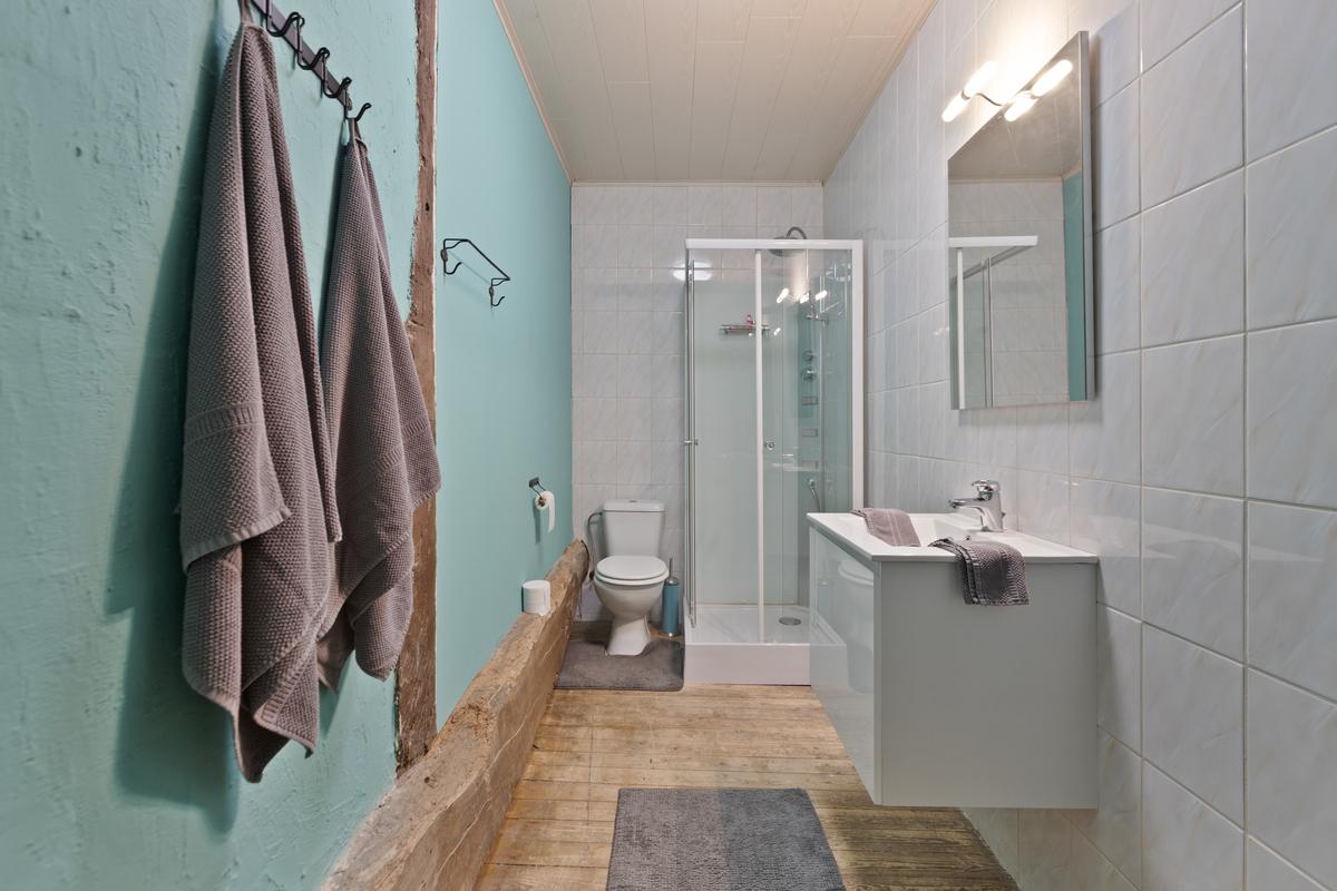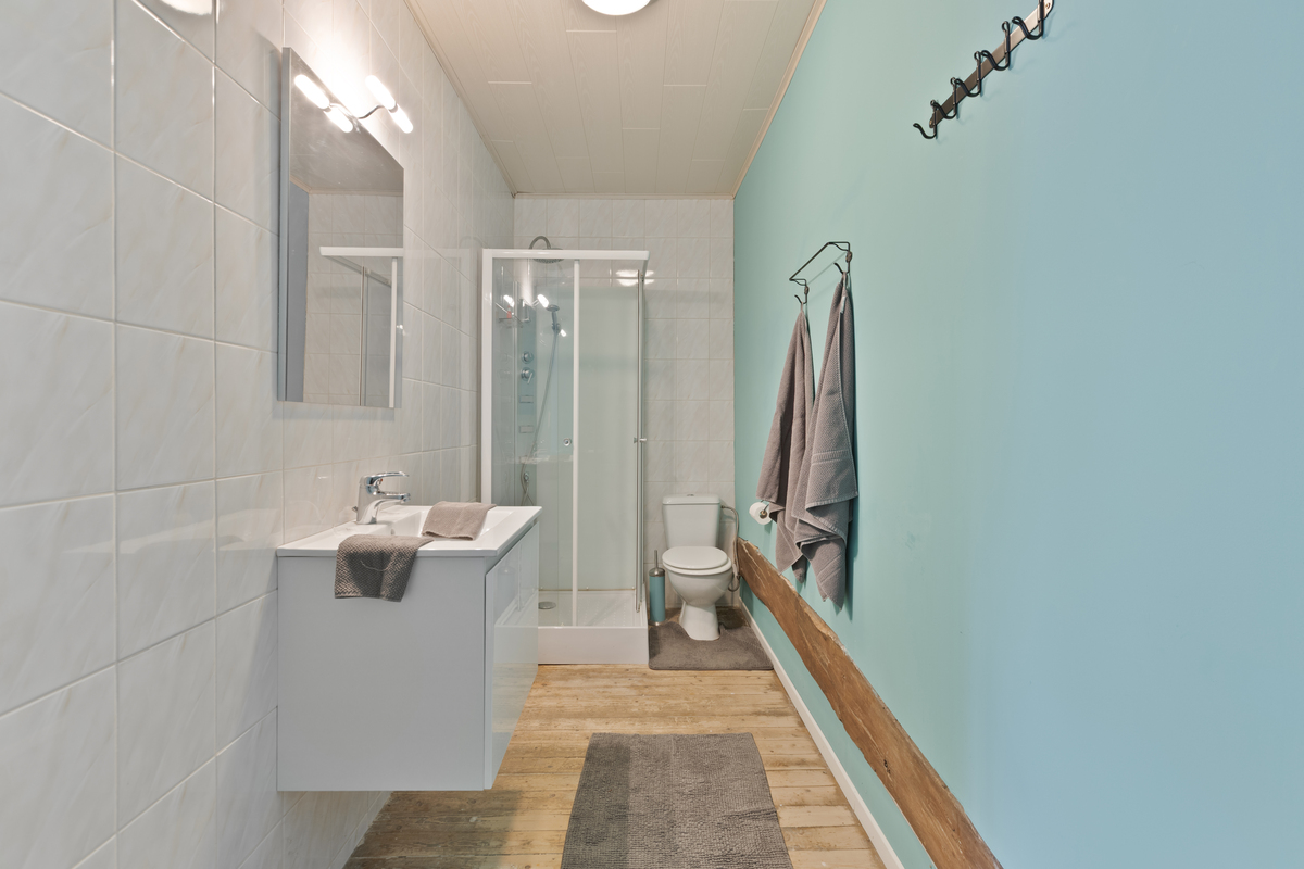 Via een trap aan de achterzijde bereikt u het gastenverblijf bestaande uit twee kamers met elk een eigen badkamer – perfect voor een B&B-concept dat kan worden uitgebreid dankzij de twee studio’s op de bovenverdieping, die zelfs uitgerust zijn met eigen leefruimte, keuken, badkamer en slaapkamer.