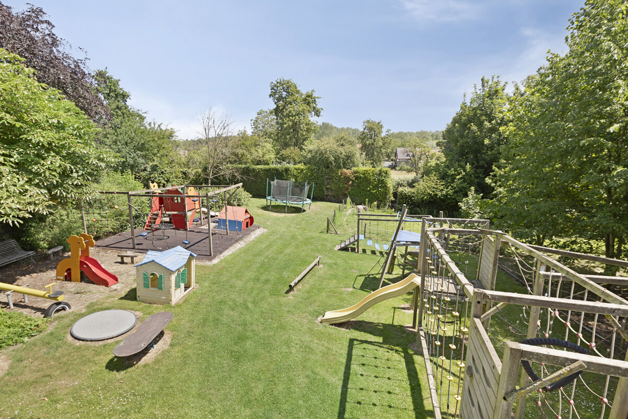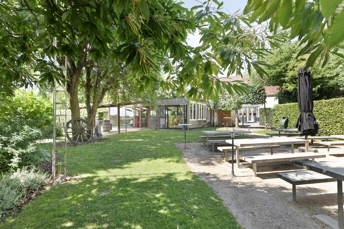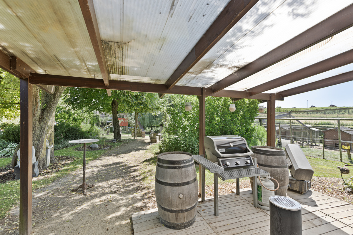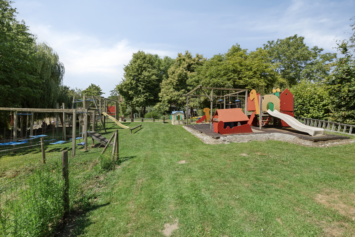 Grenzend aan de zaal werd een niet-vergunde uitbouw geplaatst die uitkomt in de aangelegde tuin met zithoekjes, grote speeltuin voor veel vertier en ook nog een dierenparkje – een sfeervolle meerwaarde voor elk evenement.