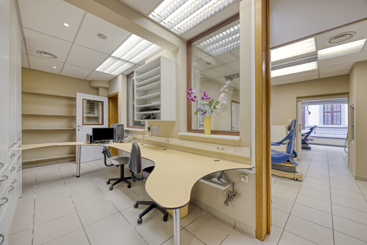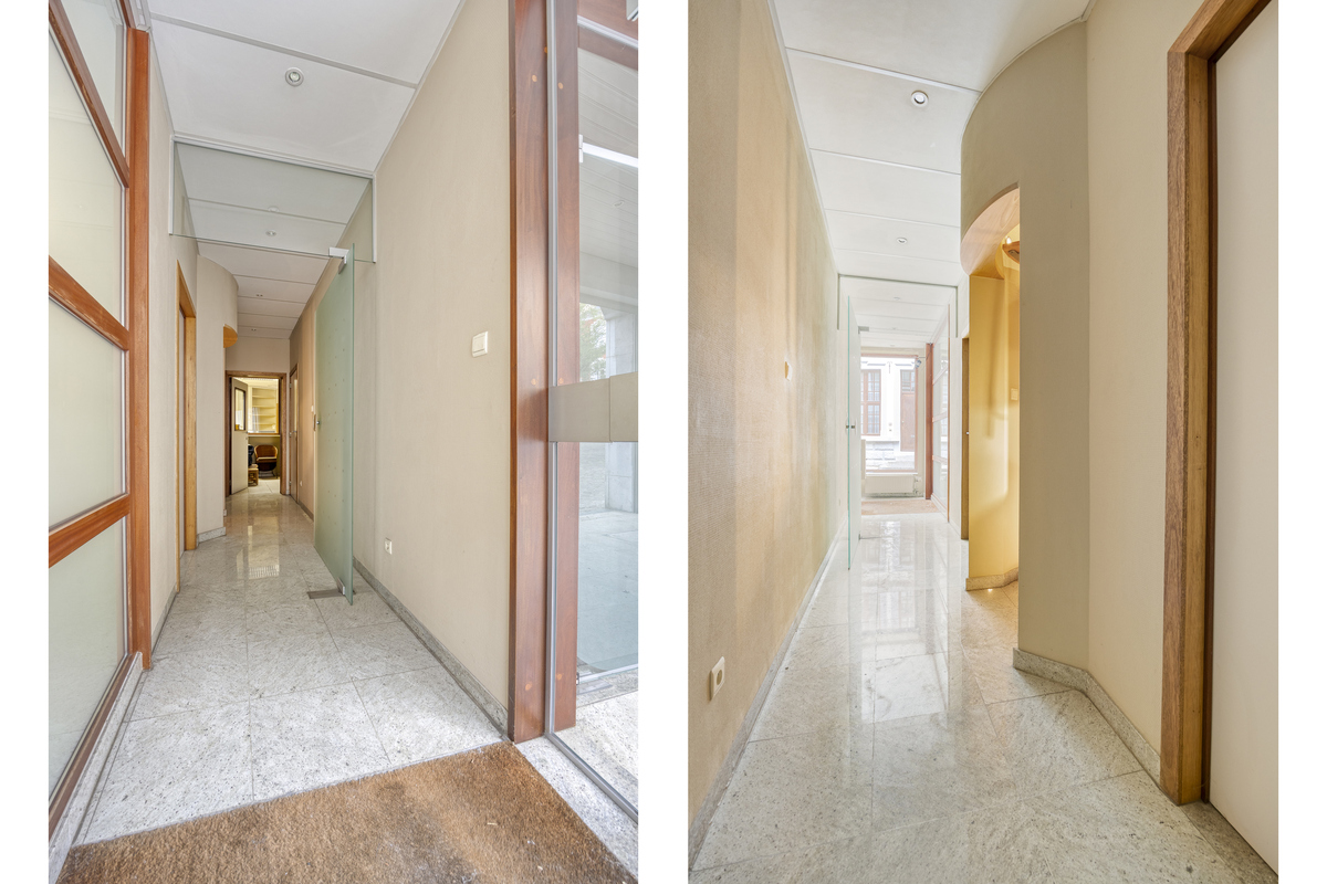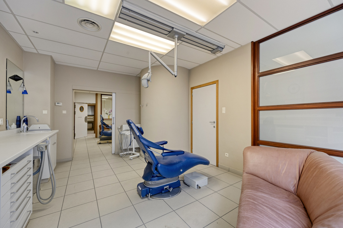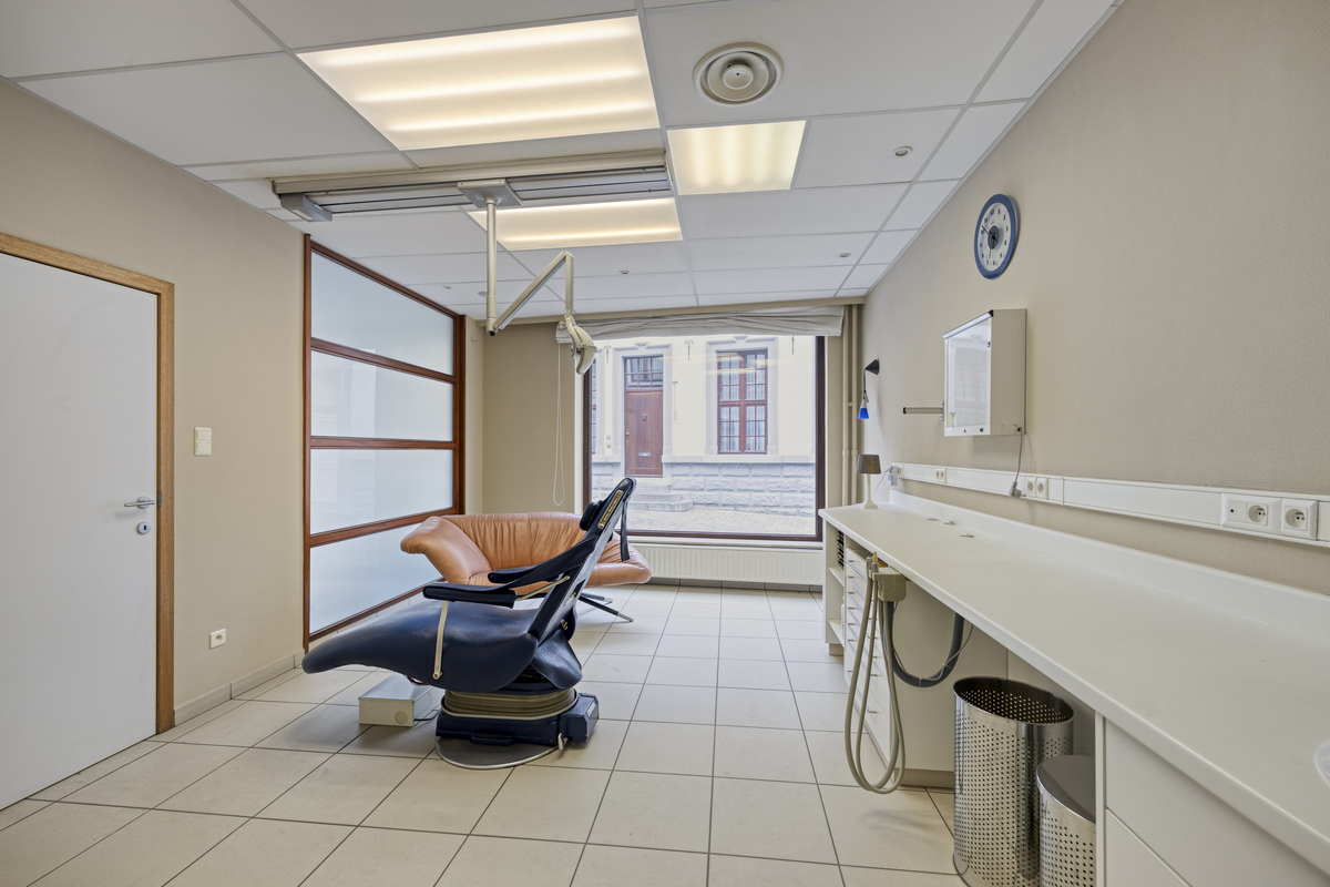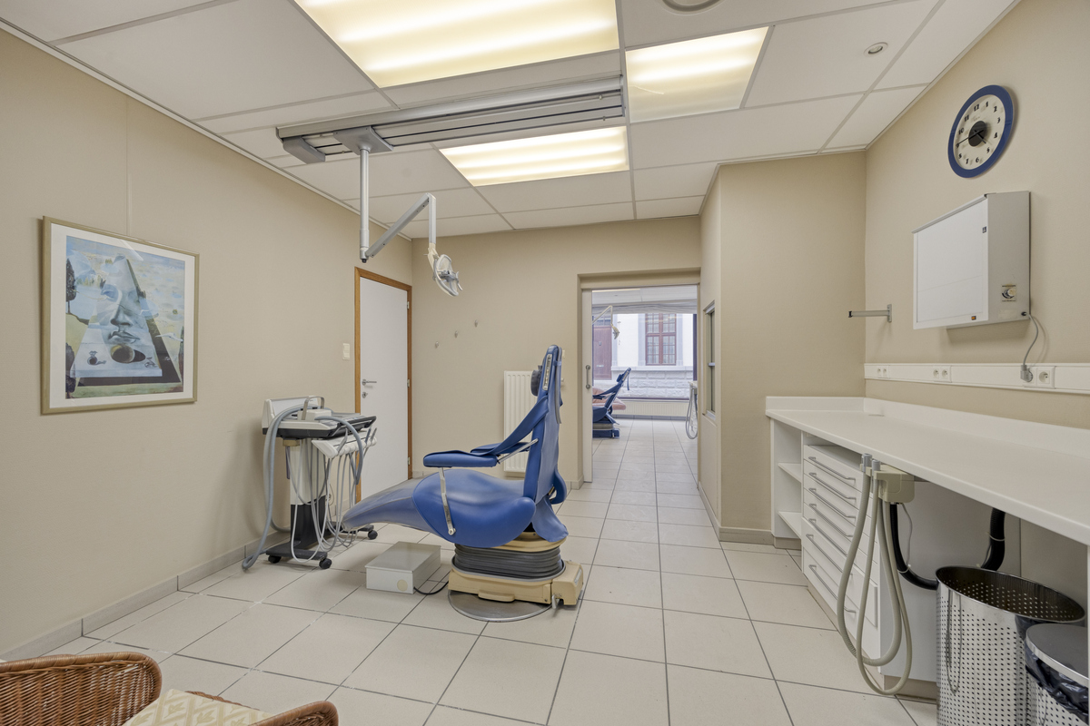 Gelijkvloers (ca. 95 m²): Volledige handelsruimte, voorheen ingericht als orthodontiepraktijk – perfect voor een medische praktijk, kantoor, winkel of andere commerciële activiteit. Aan de achterzijde treffen we een heerlijke stadstuin aan, bereikbaar via het terras op de eerste verdieping of via de garage.