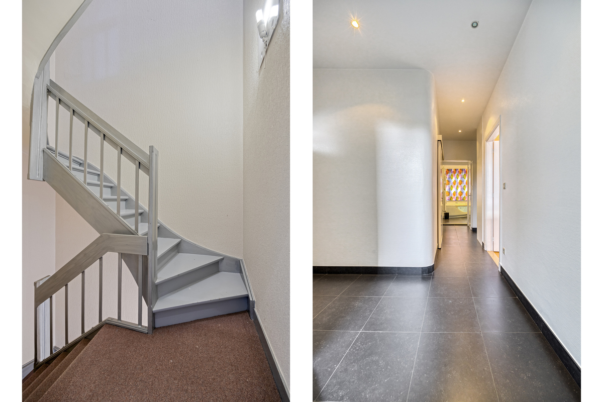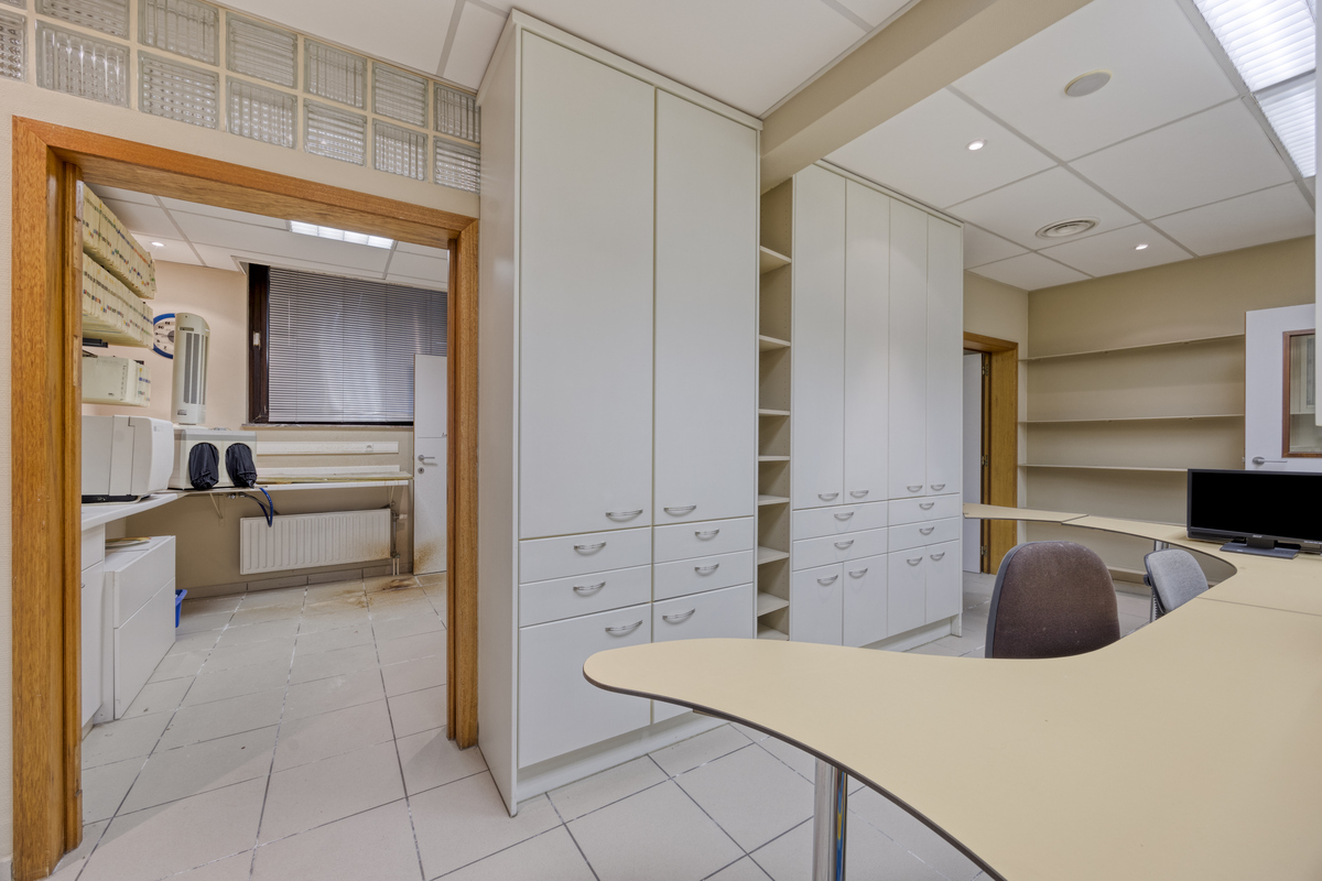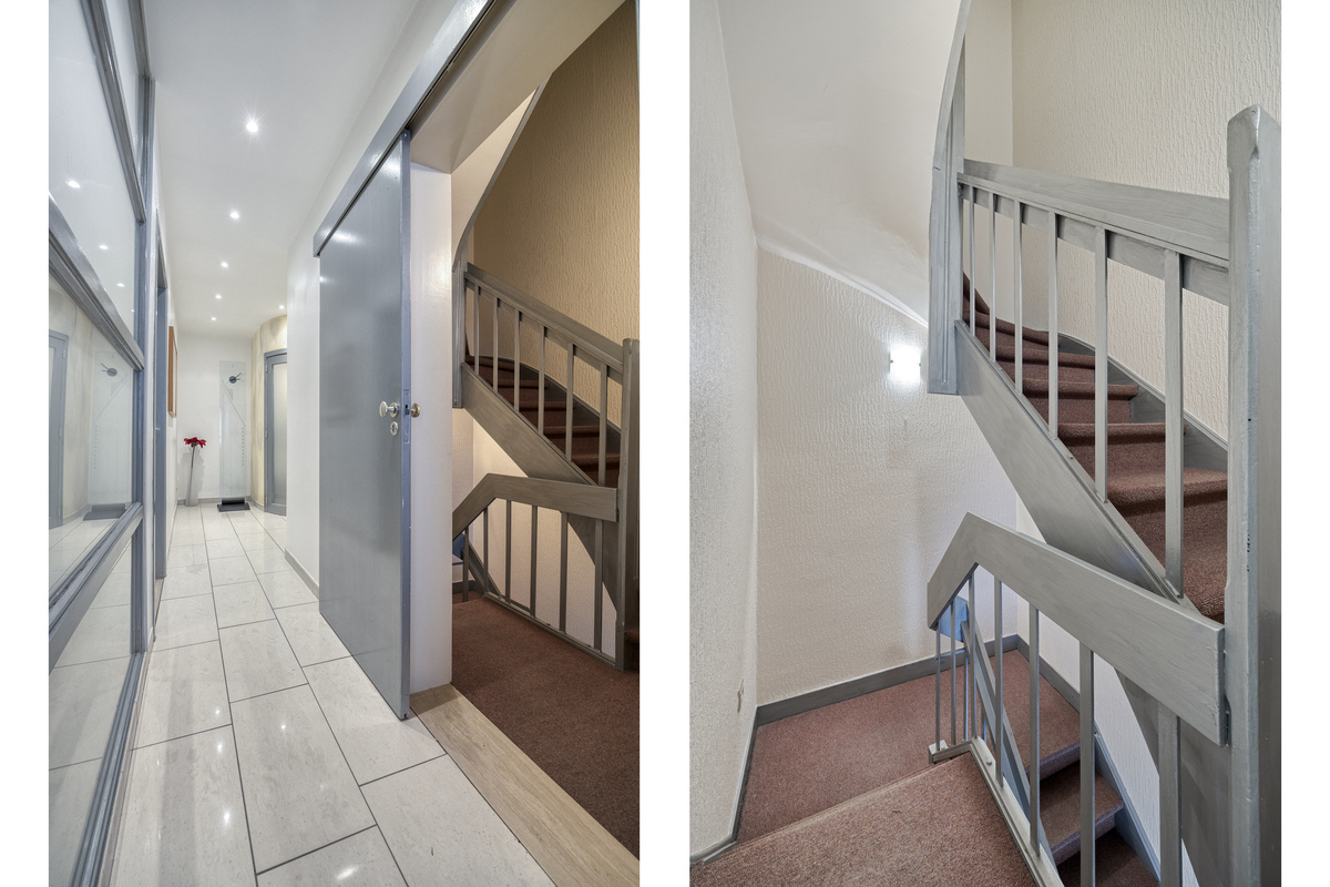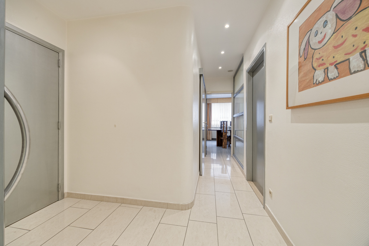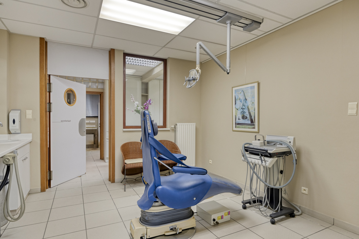 Gelijkvloers (ca. 95 m²): Volledige handelsruimte, voorheen ingericht als orthodontiepraktijk – perfect voor een medische praktijk, kantoor, winkel of andere commerciële activiteit. Aan de achterzijde treffen we een heerlijke stadstuin aan, bereikbaar via het terras op de eerste verdieping of via de garage.