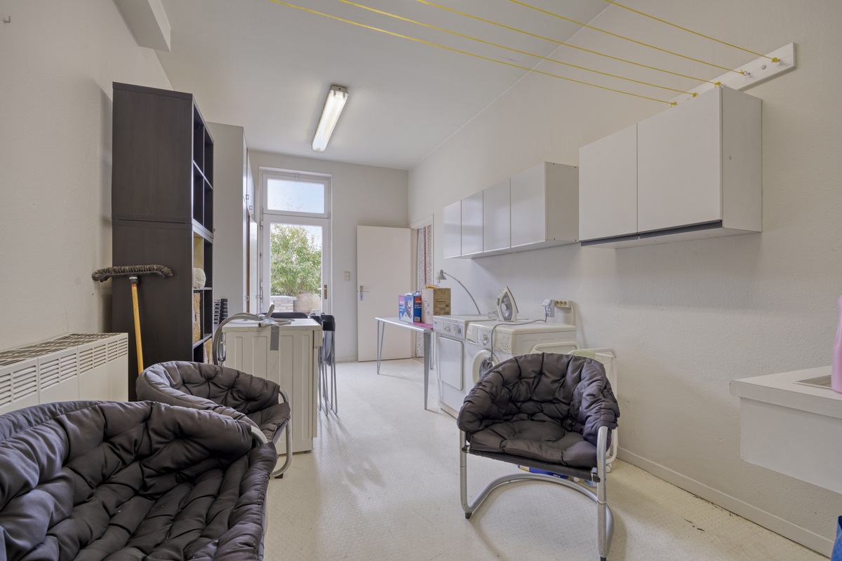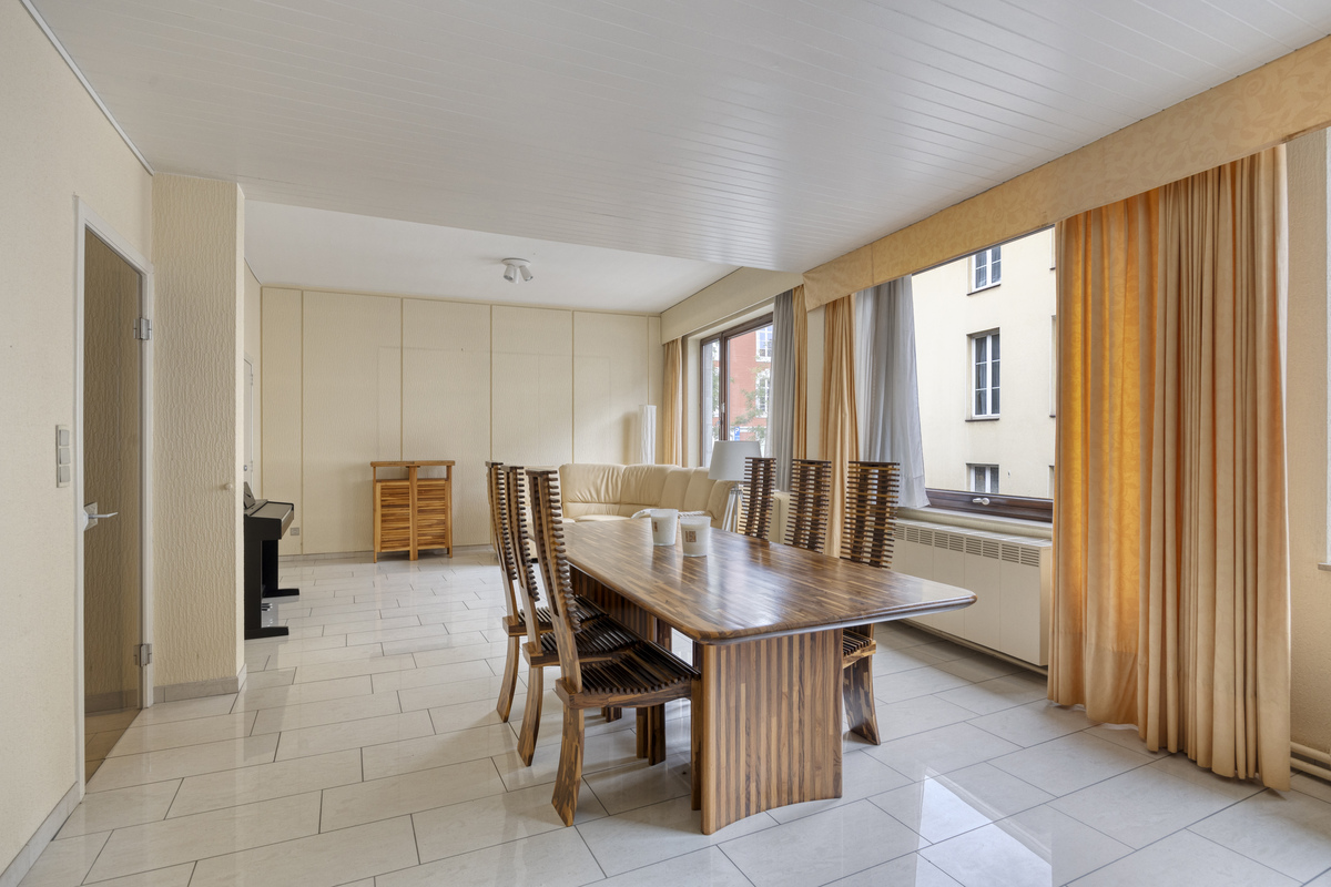 Daarnaast beschikt de woning over een zeer ruime garage (ca. 100 m²) geschikt voor meerdere voertuigen en voorzien van een automatische poort – een zeldzame troef in het centrum!